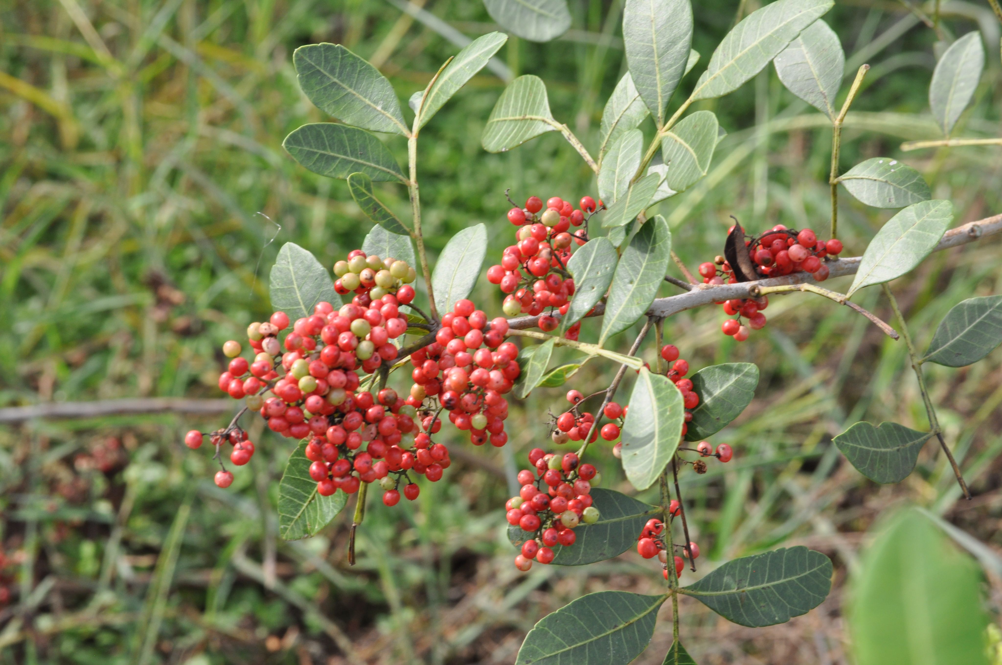 July 2025 Our tree corridors are planted using a mix of native species trees, including the Brazilian peppertree (schinus terebinthifolius). This species grows quickly, often exceeding 2 meters in height in less than 2 years, and can reach 10 meters when fully grown. The female trees produce bright red berries, which are eaten by local birds. The birds are important seed dispersers, allowing for natural regeneration of the forest.