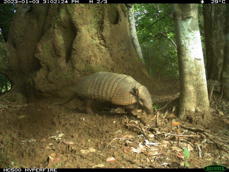 August 2024 To celebrate World Armadillo Day on 13 August, we’re excited to share a recent camera trap image of Theodore, the young giant armadillo being monitored by our project partners ICAS. Giant armadillos are nocturnal and spend around 80% of their time in their burrow so camera traps funded by Rewild Carbon are a vital tool to help understand their behaviour and ensure their survival in the Cerrado region of Brazil.